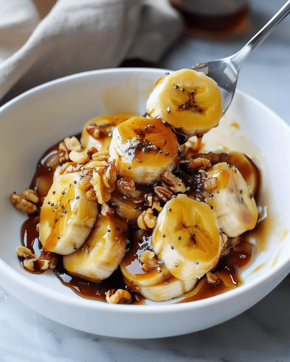The last step is truly the best: serving! Spoon the warm, caramelized bananas over a generous scoop of vanilla ice cream. This contrast of temperatures creates a delightful experience with every bite.