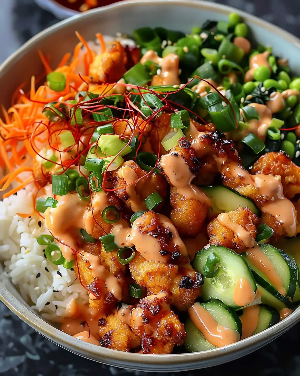 Creating a delightful experience for your guests means offering various toppings that allow everyone to personalize their bang bang chicken bowl. Consider setting up a toppings bar with: