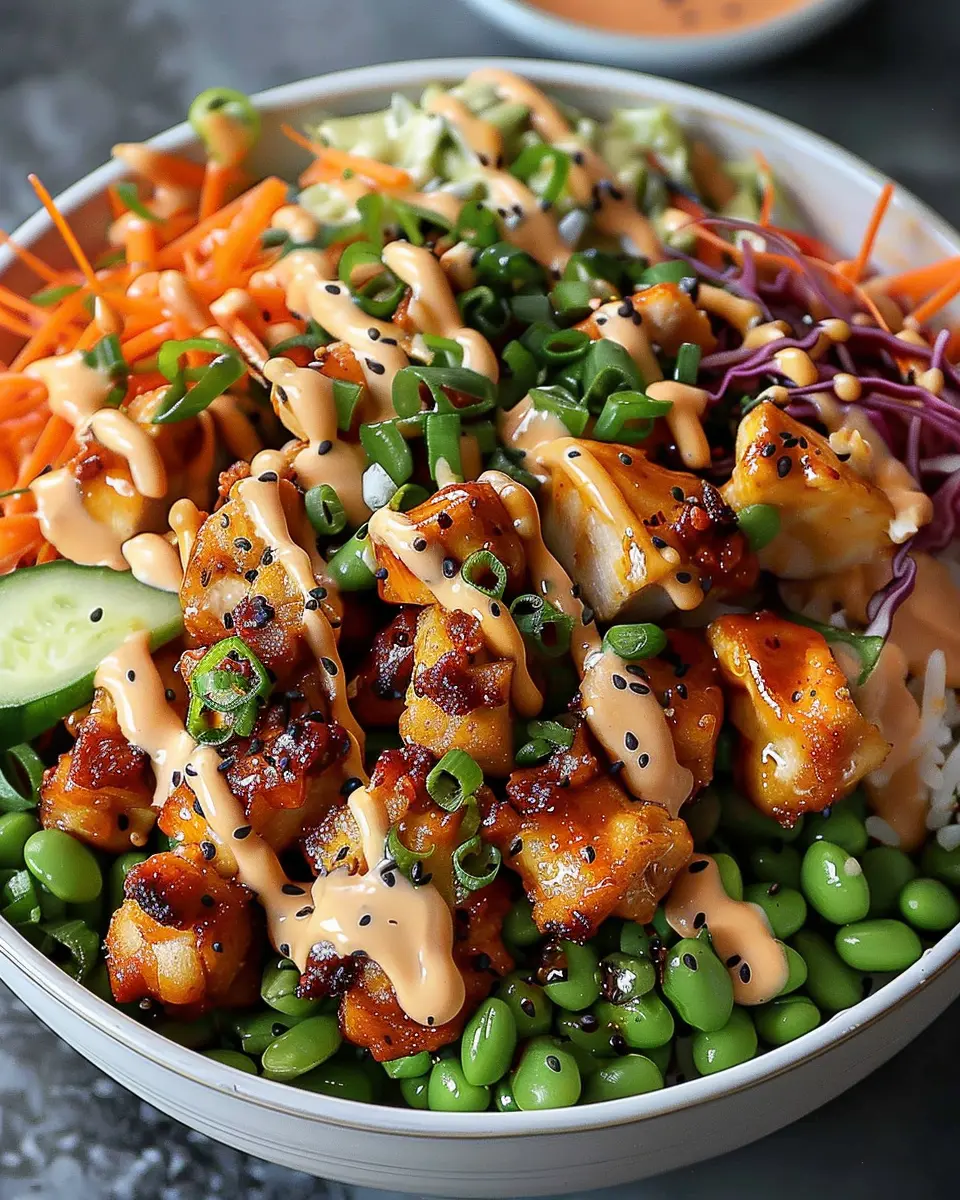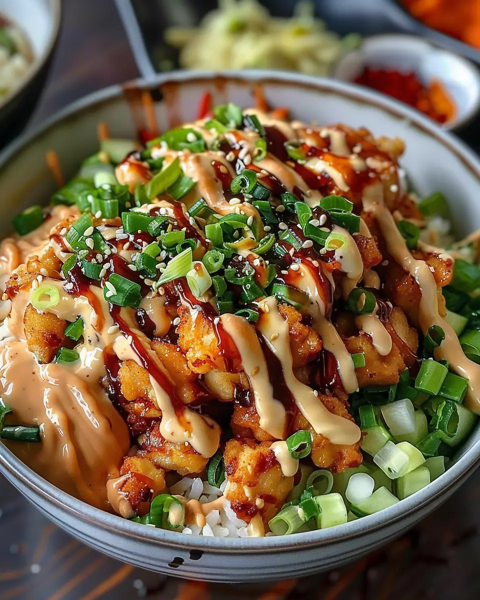 And there you have it, a delightful Bang Bang Chicken Bowl ready to be enjoyed! Not only is this meal visually stunning, but it also offers a symphony of flavors that will make your taste buds dance. Don’t forget to share your creation with friends or even on social media; who knows, it might inspire someone else to whip it up for themselves!