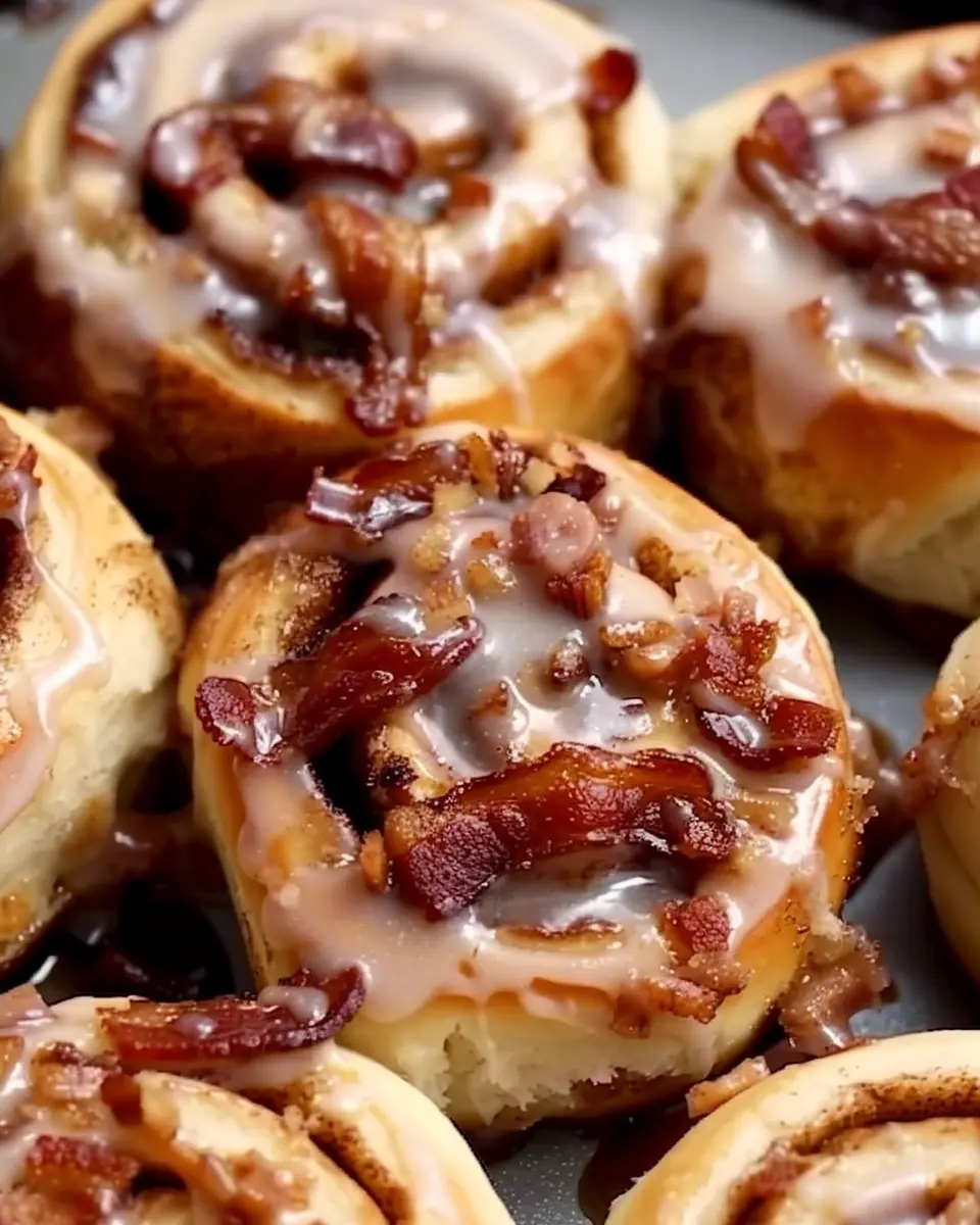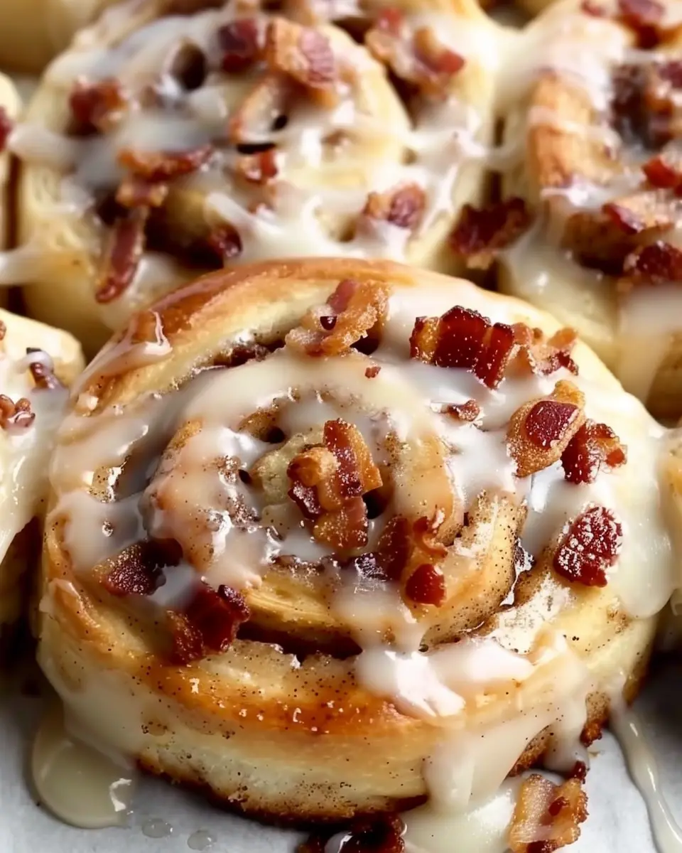 Bourbon Maple Turkey Bacon Cinnamon Rolls are the perfect treat for a cozy brunch, combining sweet and savory flavors in a flaky roll.
