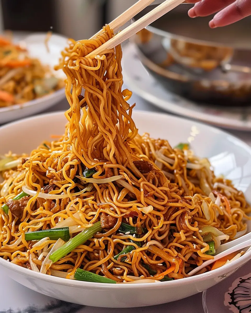 PrintCantonese Chow Mein: Easy Recipe with Turkey Bacon and Chicken Ham