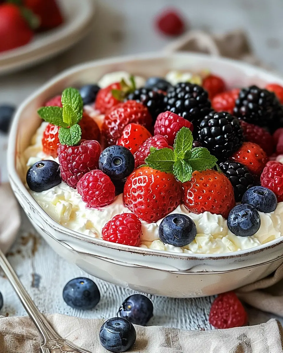 - Fresh berries: A mix of strawberries, blueberries, and raspberries adds vibrant color and natural sweetness.