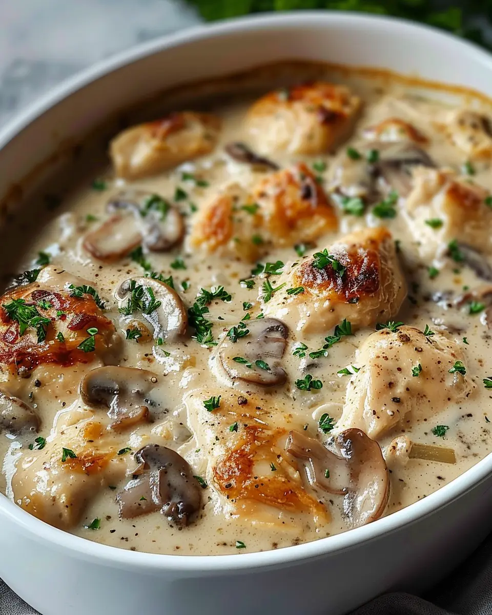 In conclusion, the Cream of Mushroom Soup Chicken Bake is not just a meal; it’s a cozy hug on a plate. With minimal prep and maximum flavor, this recipe fits perfectly into the busy lives of young professionals. The creamy texture combined with the savory notes of chicken and turkey bacon makes it a fantastic option for weeknight dinners or when you have friends over.