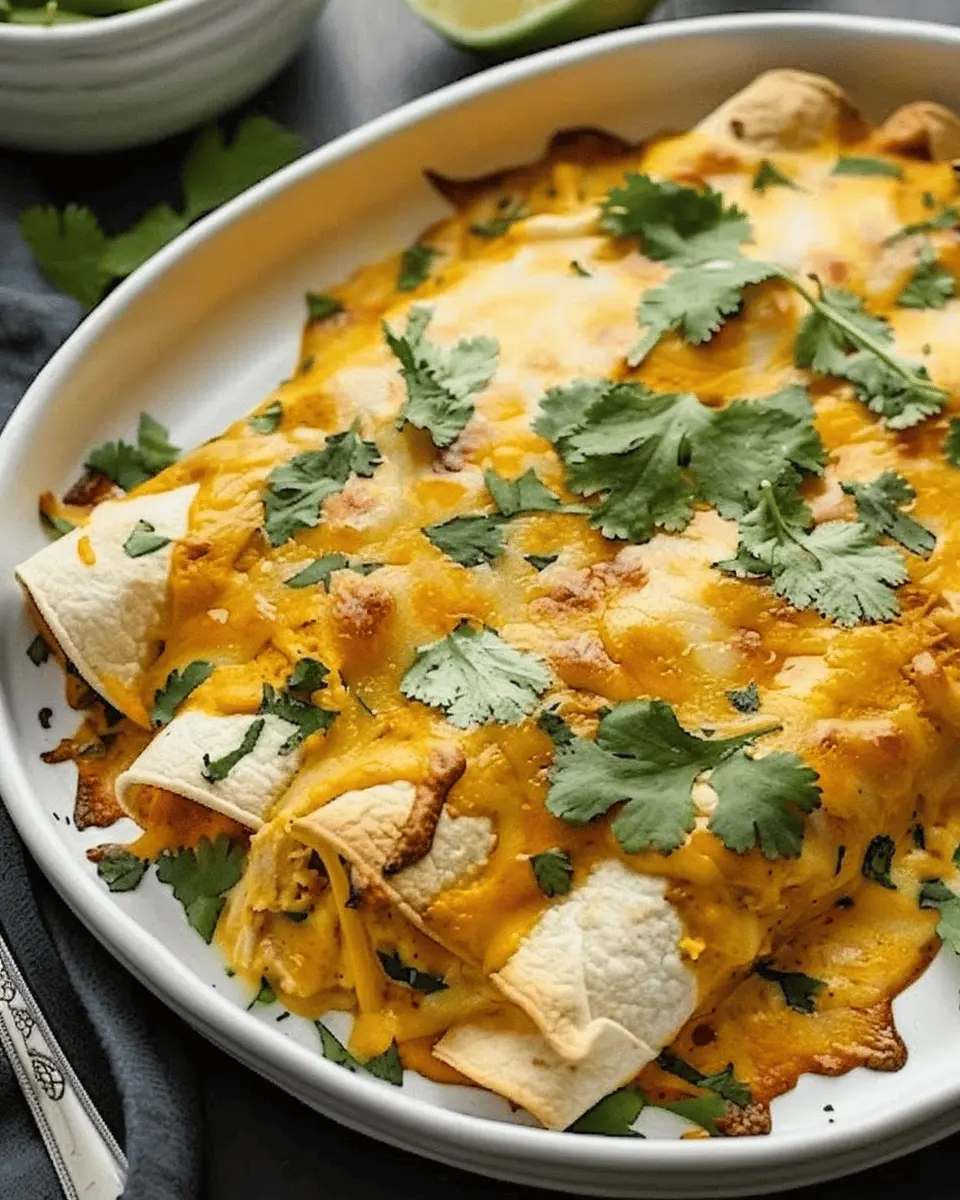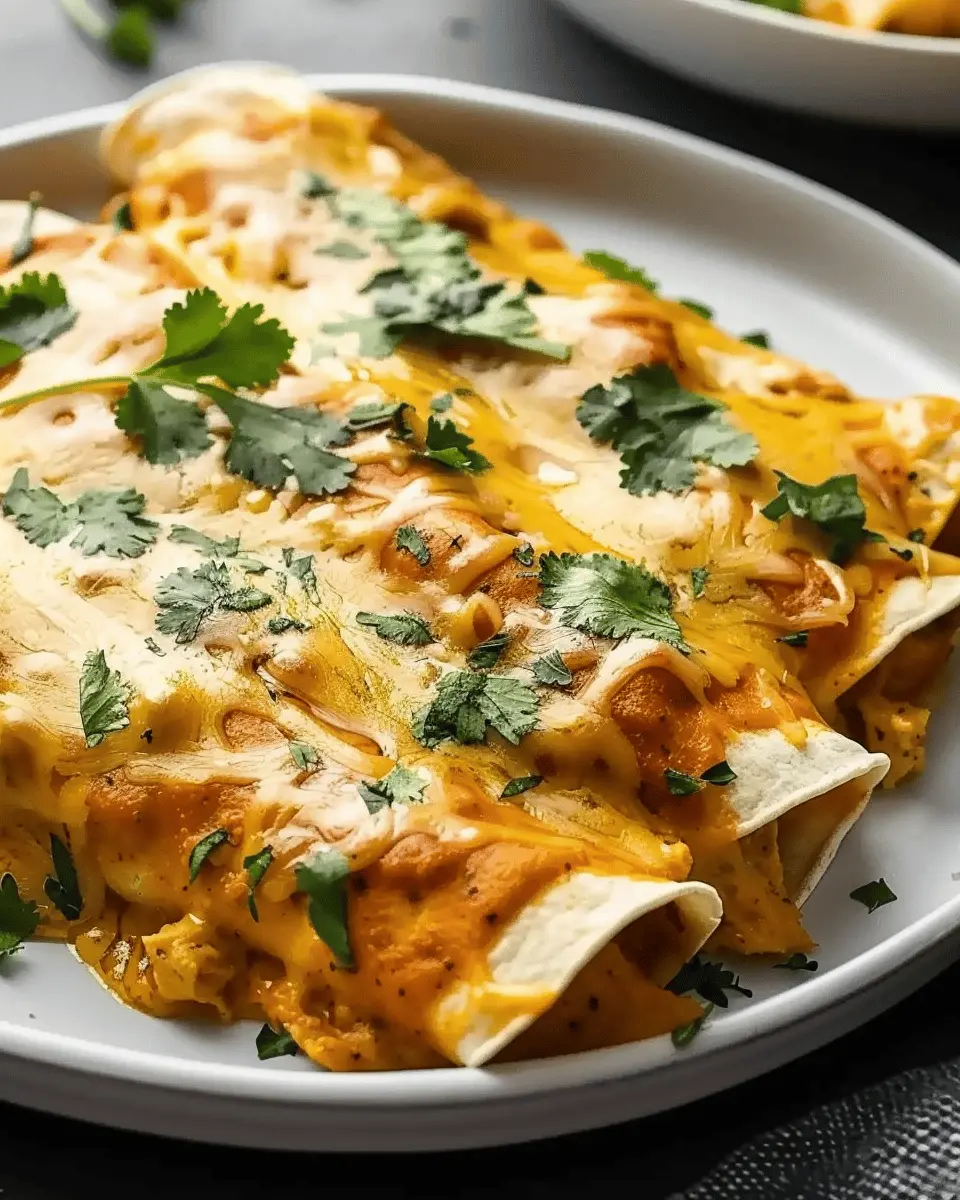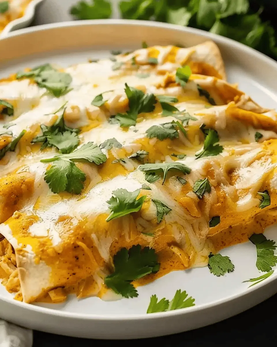 Once you’ve removed them from the oven, allow the enchiladas to cool slightly before serving. Garnish with chopped cilantro for a fresh, vibrant touch. These Creamy Pumpkin Chicken Enchiladas are sure to impress your family and become a new fall favorite.