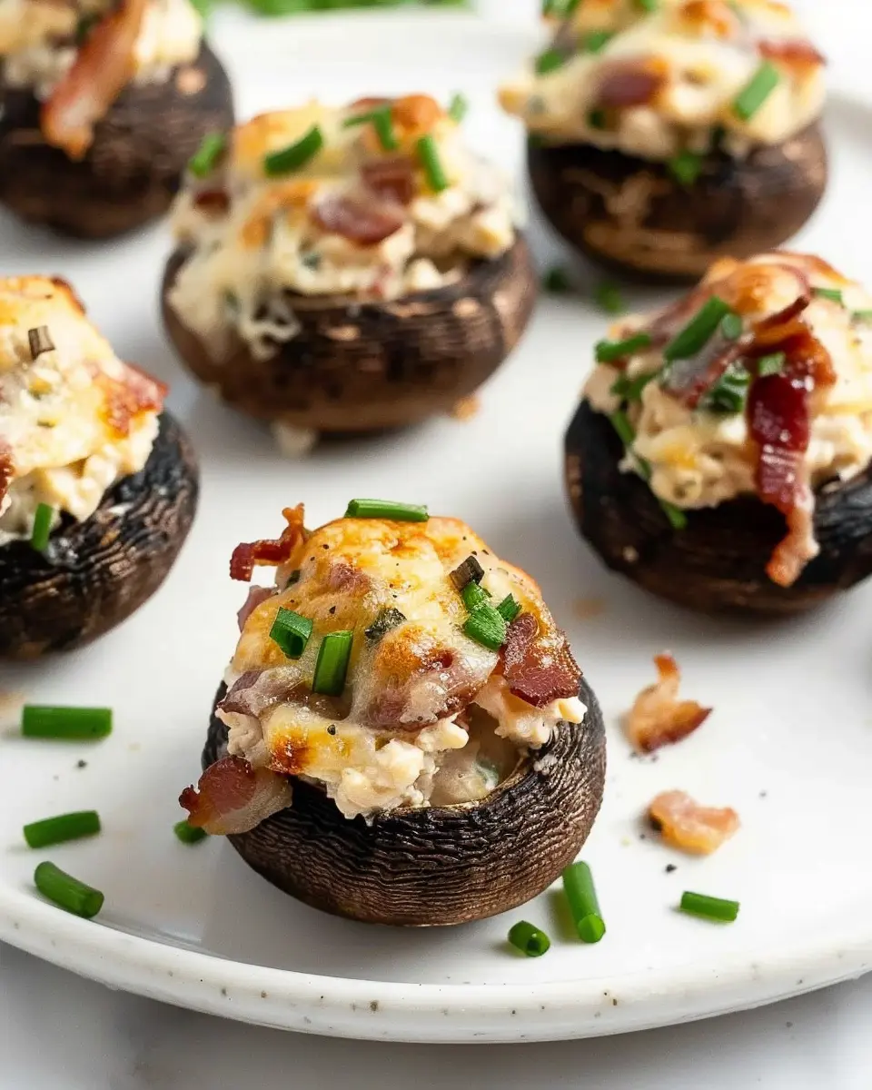 Elevate your easy turkey bacon and cream cheese stuffed mushrooms by considering how you present them. Use a rustic wooden board for a warm, inviting feel. Arrange the stuffed mushrooms in a circular pattern, garnishing with fresh parsley or microgreens for a pop of color. For a fancy touch, serve them in individual mini cast-iron skillets—this adds a delicious farmhouse charm. You could also venture into a garden theme by placing them on a bed of arugula or baby spinach leaves.