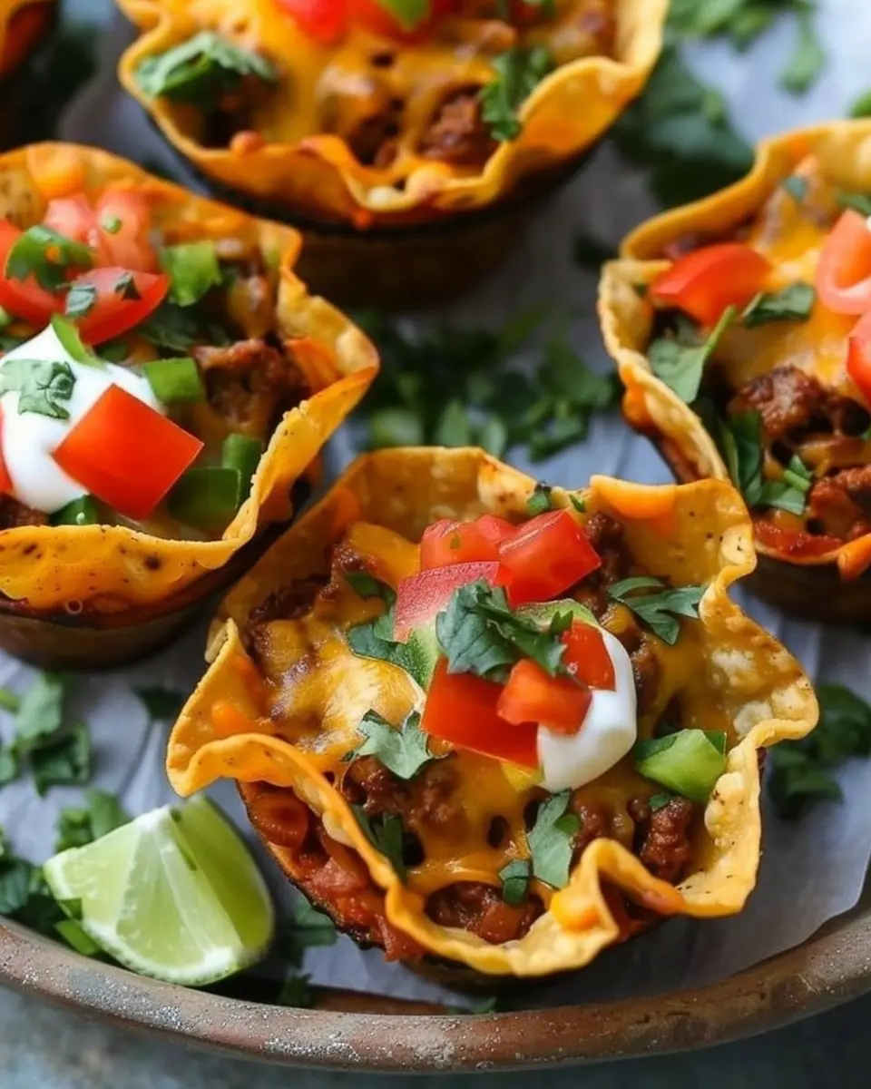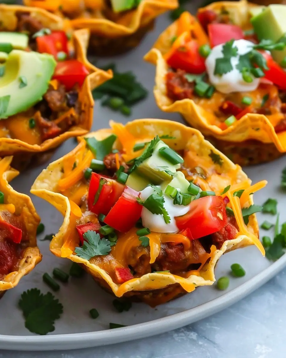 For the crispiest taco cups, start by preheating your oven to 375°F (190°C). Lightly spray your muffin tin with cooking oil to help the wonton wrappers crisp up perfectly. Bake the wrappers for about 5-7 minutes before adding your filling. Not only does this step ensure a golden and crunchy texture, but it also prevents them from becoming soggy. If you want an extra layer of flavor, lightly brush the wontons with olive oil or butter before baking. You can find amazing insights on achieving the perfect crispness from sources like Food Network.