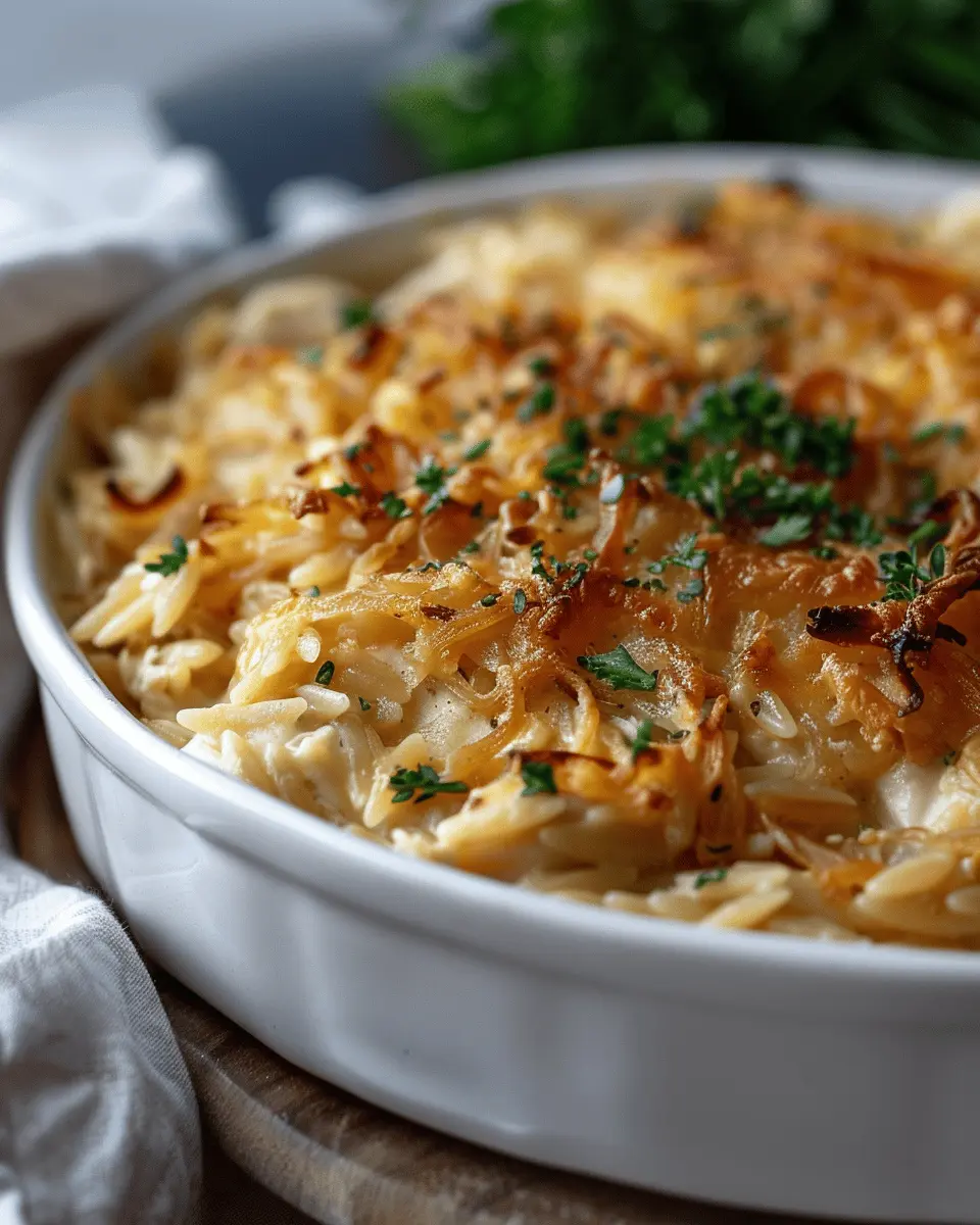 Introduction to French Onion Chicken Orzo Casserole