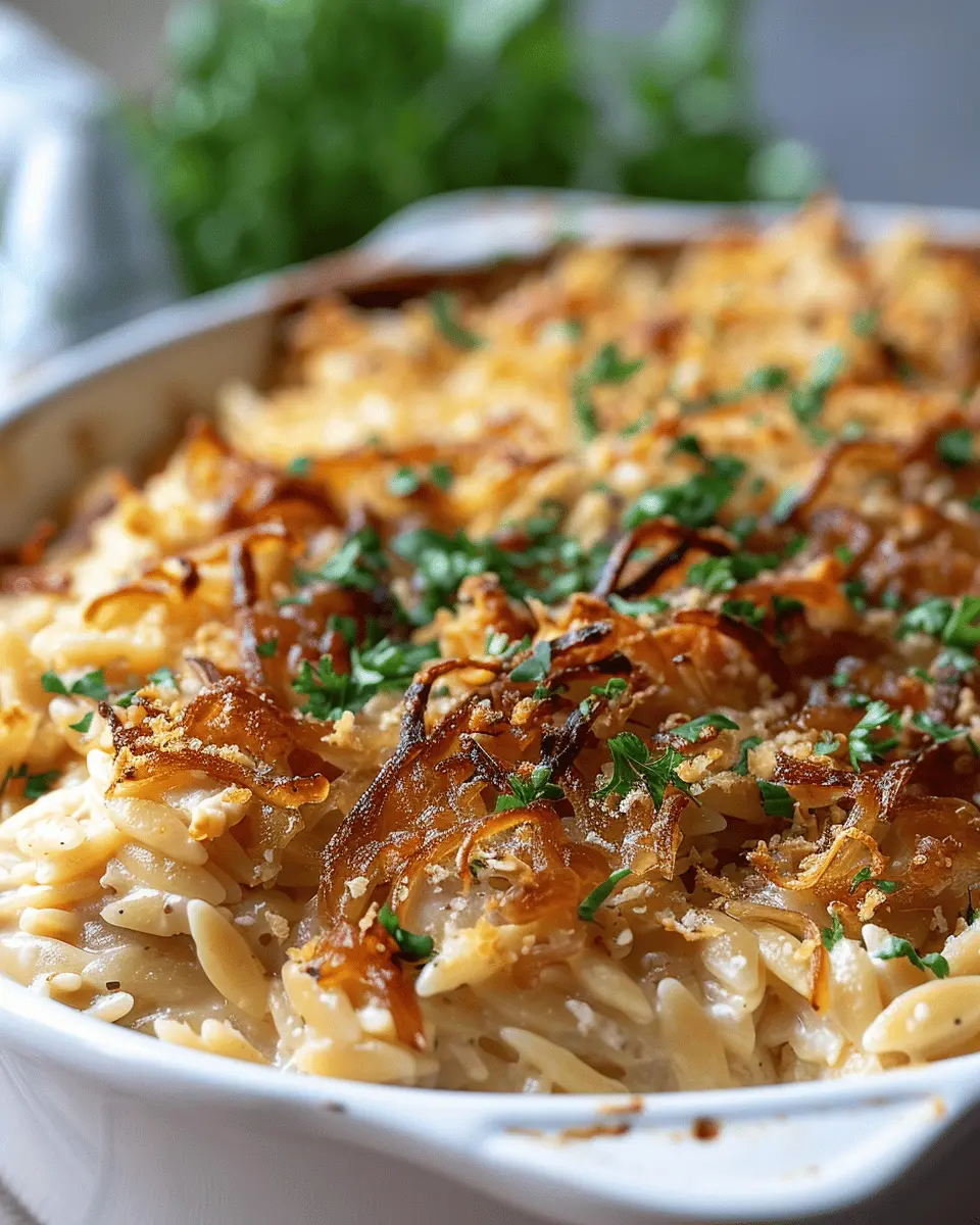 PrintFrench Onion Chicken Orzo Casserole: Easy Comfort Feast at Home
