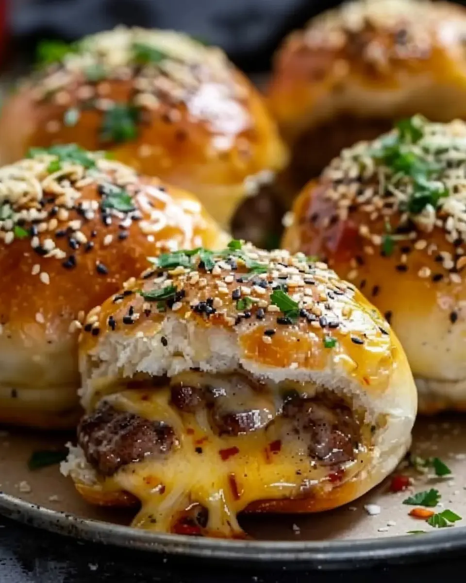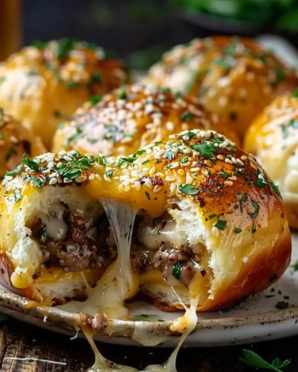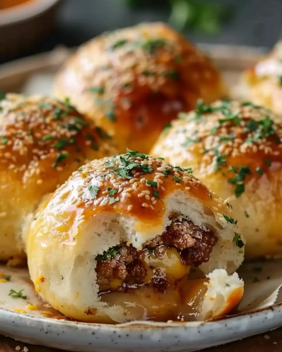 Your Garlic Parmesan Cheeseburger Bombs are now ready to be devoured! Whether you’re serving them up at a gathering or keeping them all to yourself for a cozy night in, they’re sure to impress. Enjoy!
