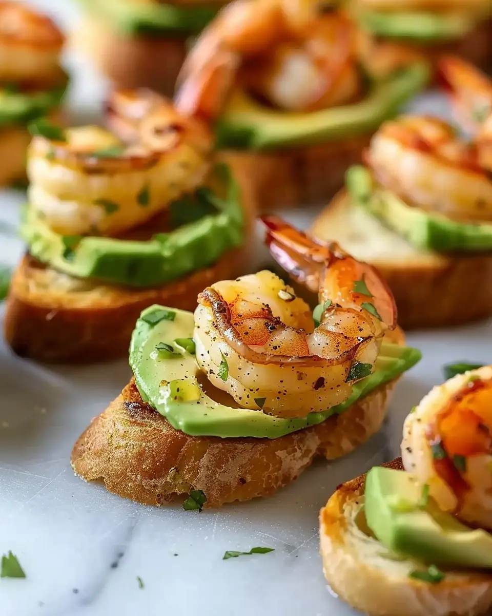 Serve these bites fresh out of the oven. For gatherings, prepare the shrimp and avocado mix in advance, then assemble just before your guests arrive to maintain that crunchy crostini texture.