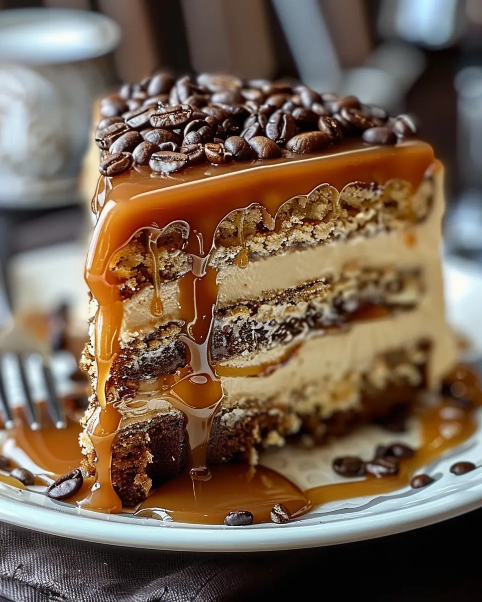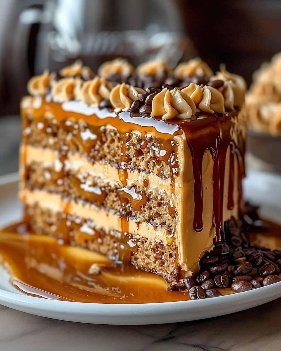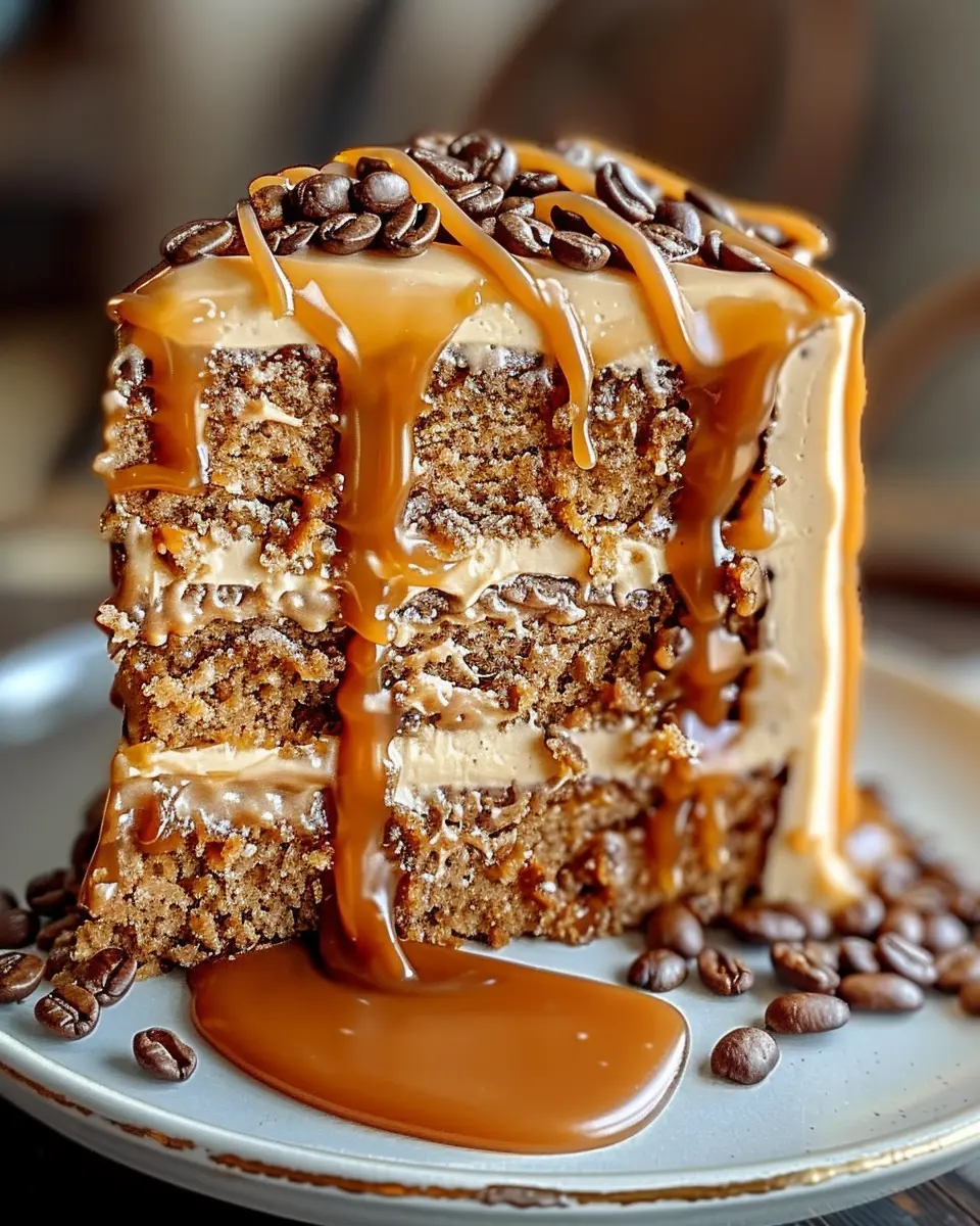 A deliciously rich and gooey coffee caramel cake that is perfect for dessert lovers.