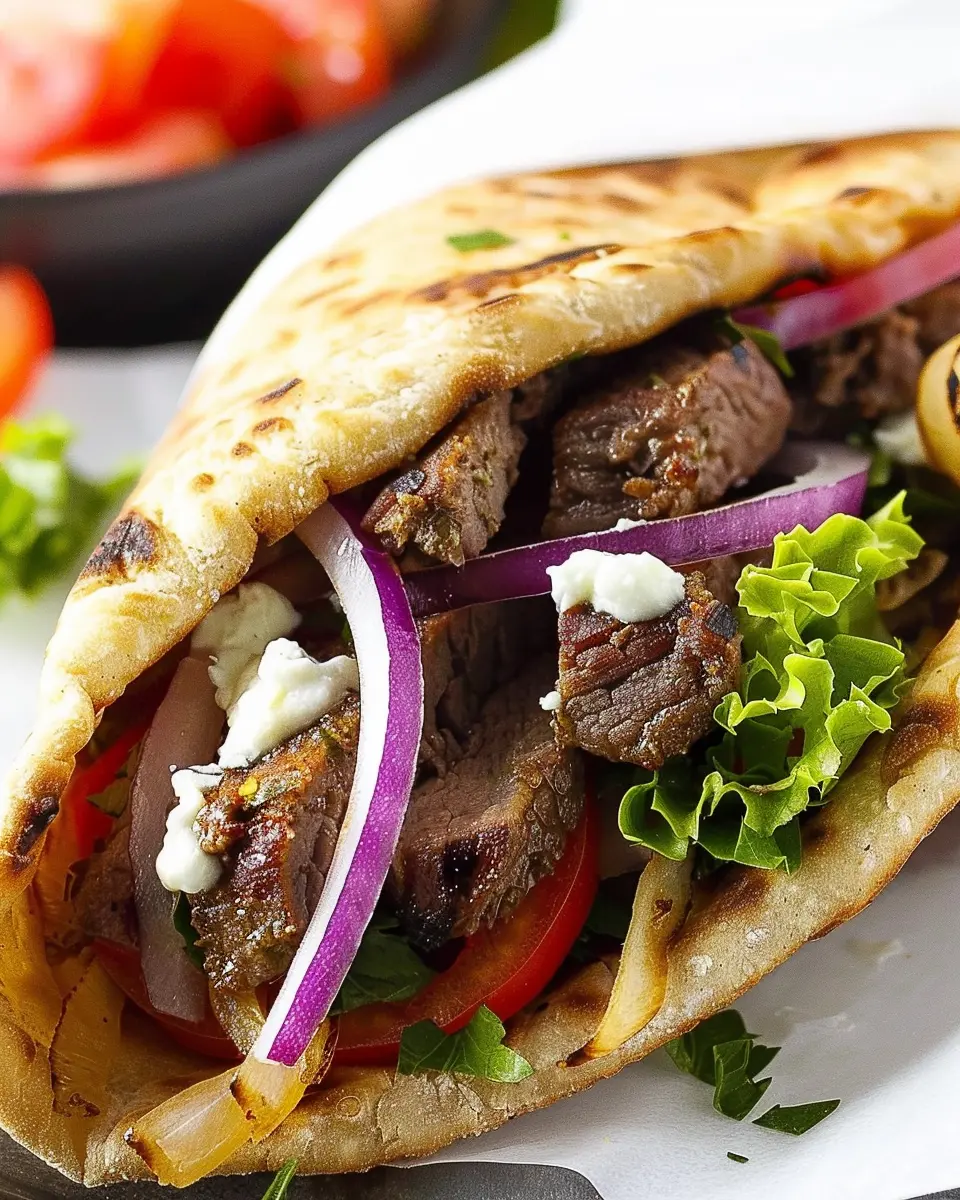 When it comes to serving gyro meat, you can’t go wrong with a classic gyro wrap. Start with a warm pita, generously fill it with slices of your beautifully seasoned gyro meat, and add: