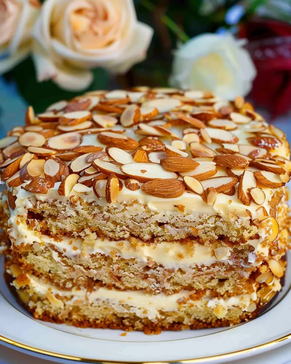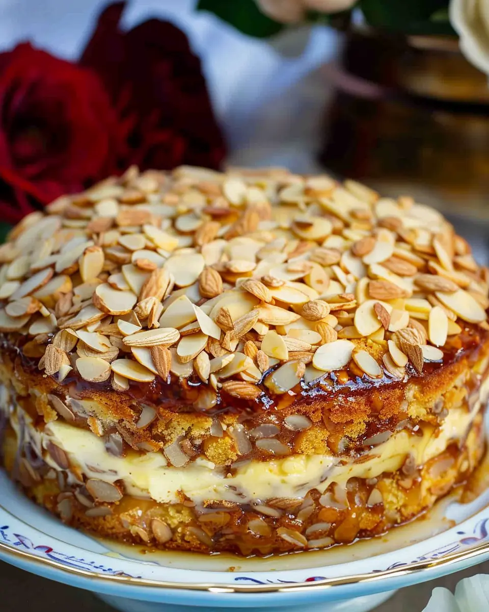 PrintHeavenly Honey Almond Bee Sting Cake: A Delightful German Treat