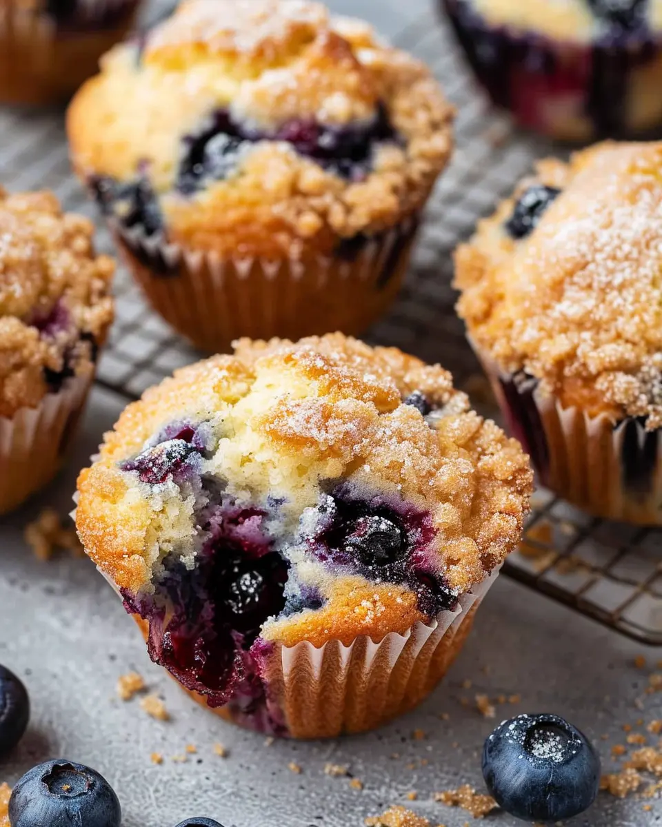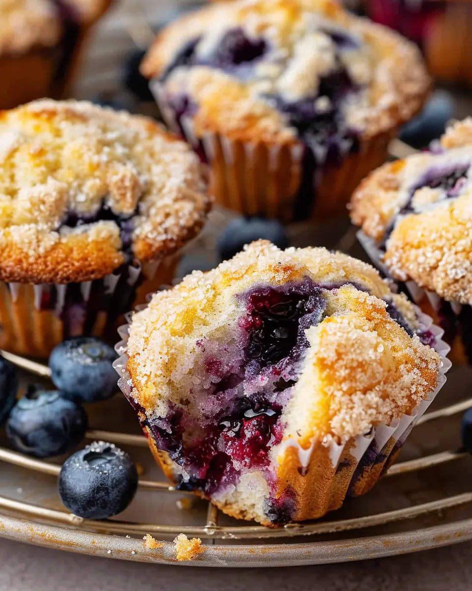 Indulge in the delightful sweetness of homemade blueberry muffins, perfect for a cozy morning treat.
