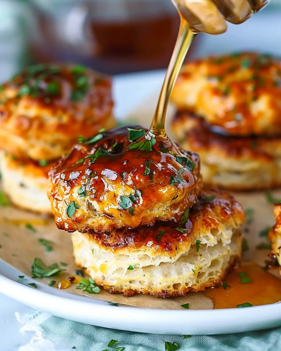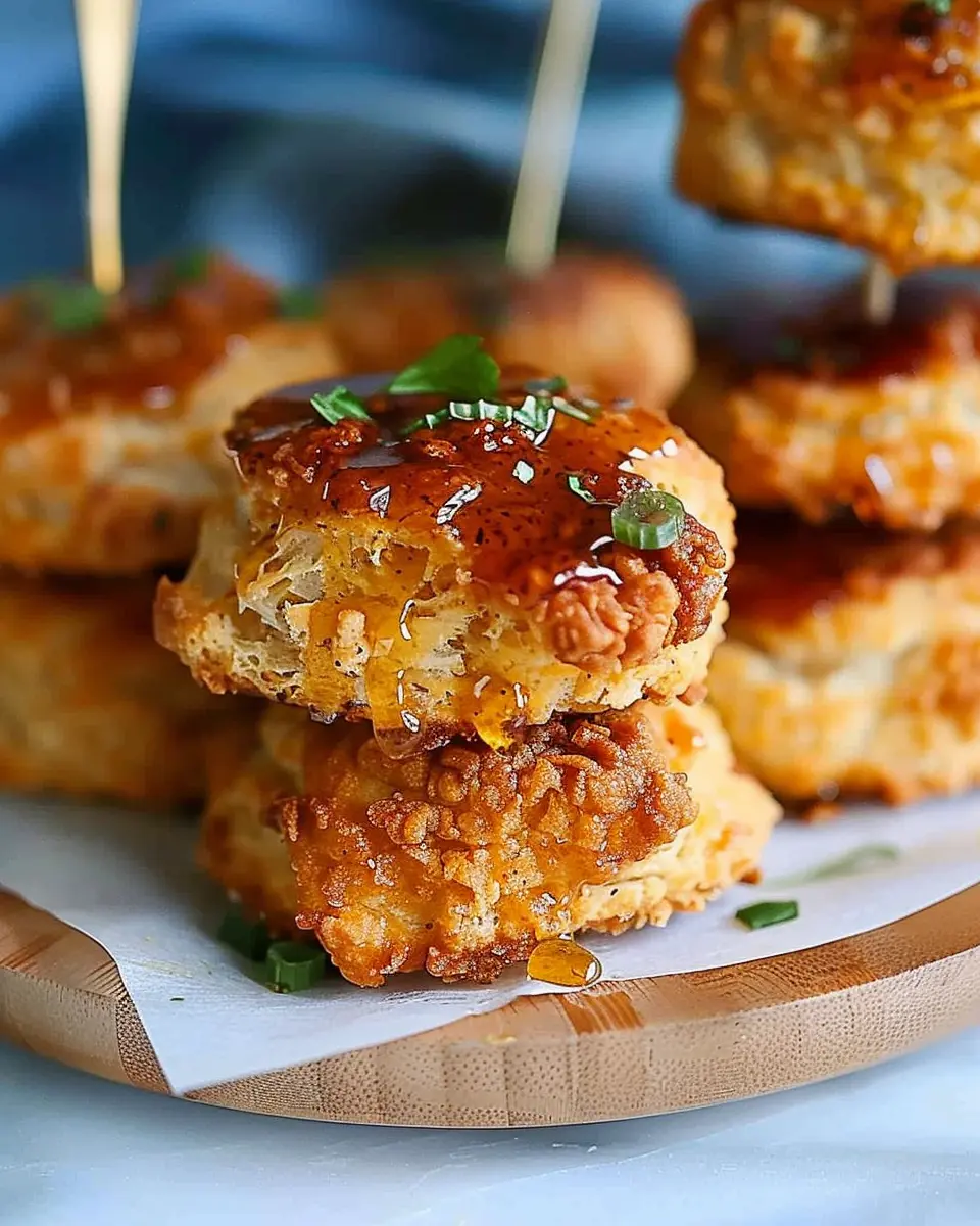 Indulge in these delicious hot honey chicken biscuits that combine savory and sweet flavors for a perfect comfort food treat.