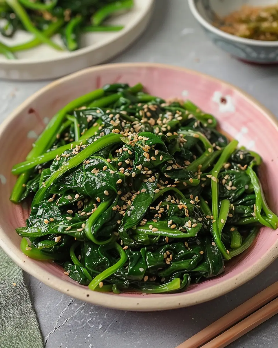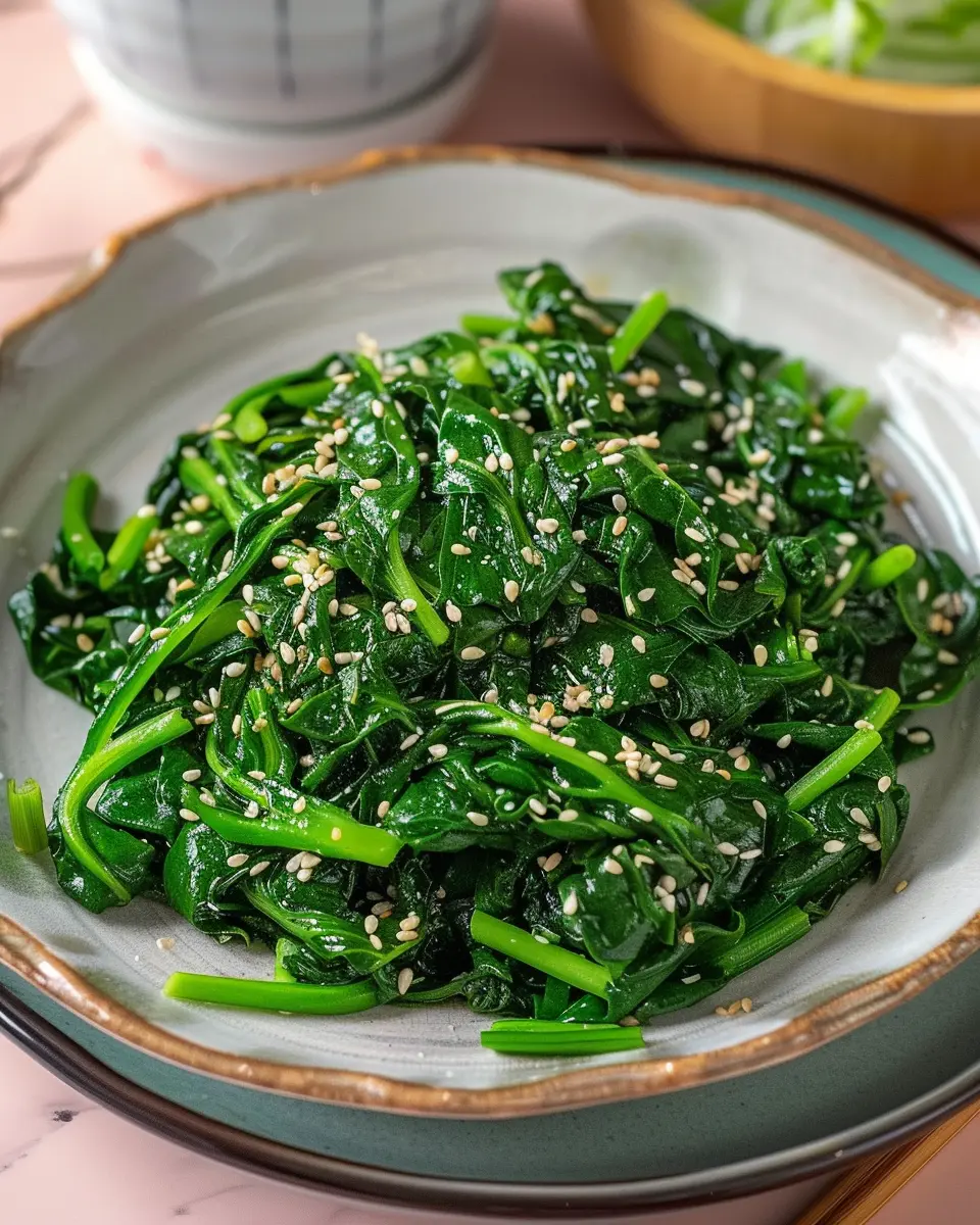 - Presentation: Place the seasoned spinach in a small bowl or on a serving plate. Drizzle over any remaining sesame oil and sprinkle with additional sesame seeds for a bit of extra flair.