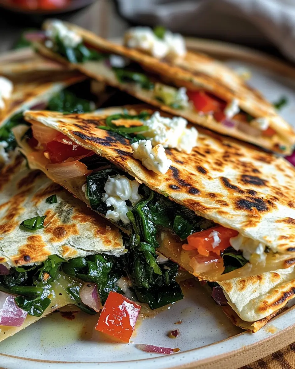 PrintMediterranean Quesadillas: Easy Spinach, Feta, and Mozzarella Delight
