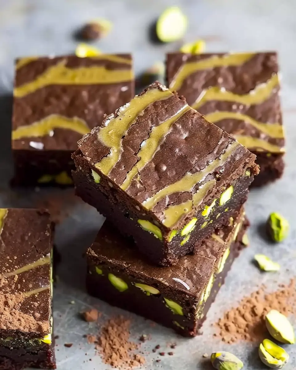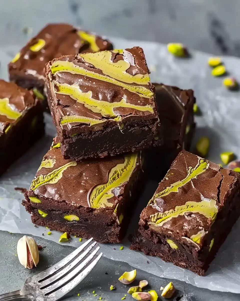 Get playful with your presentation! Cut the Pistachio Chocolate Brownies into fun shapes using cookie cutters for a unique twist. Stack them high on a decorative cake stand for a stunning centerpiece at your next gathering. Dust with powdered sugar or finely chopped pistachios for visual appeal. You can also serve them warm, à la mode, or even in small mason jars layered with layers of brownies and cream for an eye-catching dessert that’s also portable.