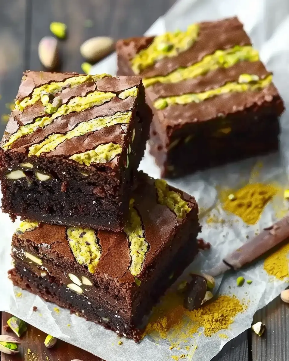 Indulge in these rich Pistachio Chocolate Brownies inspired by the delightful flavors of Dubai.
