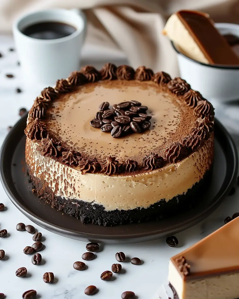 A rich and decadent espresso cheesecake that combines the bold flavors of espresso with a creamy cheesecake base.