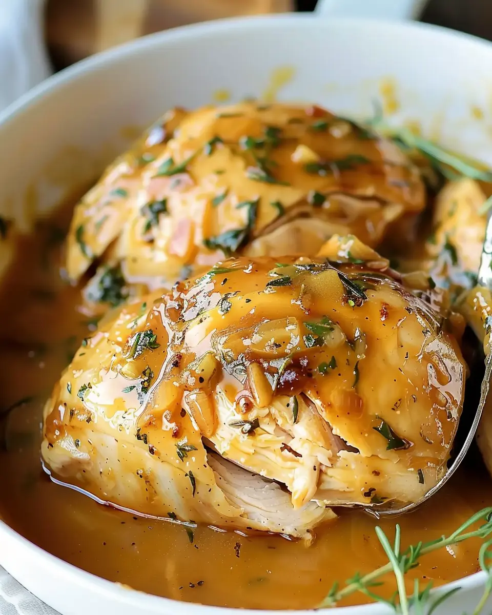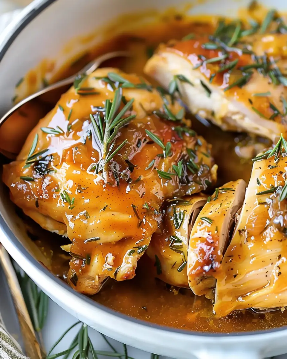 In a separate bowl, it’s time to whip up your honey mustard sauce. Combine the honey, mustard, minced garlic, and chicken broth. This mix is the star of the dish, infusing every bite with a sweet and tangy flavor. Don’t hold back on experimenting—feel free to adjust the honey and mustard ratio based on your flavor preference. Once blended, pour the sauce over the chicken, letting it settle into all those delicious chicken layers.