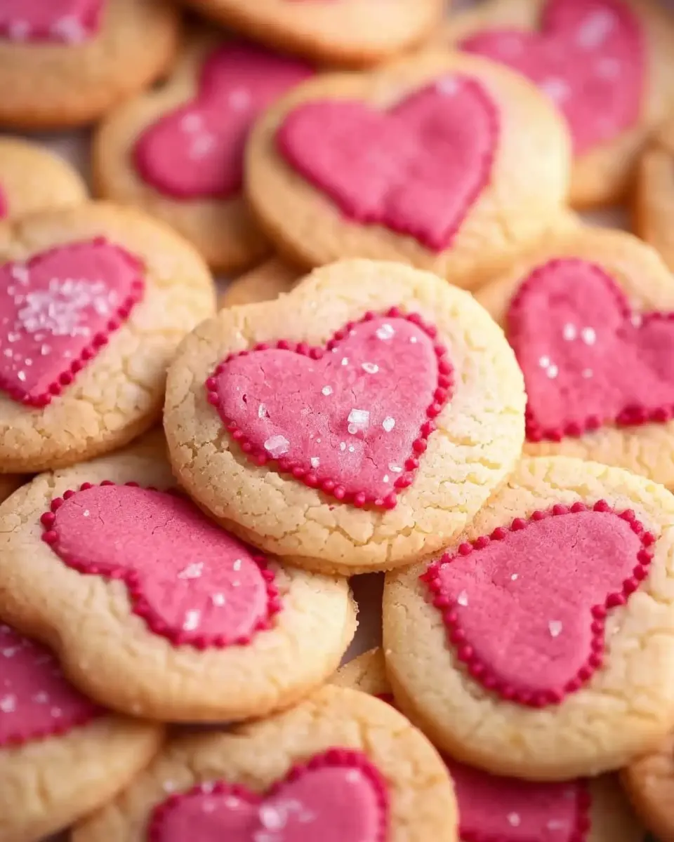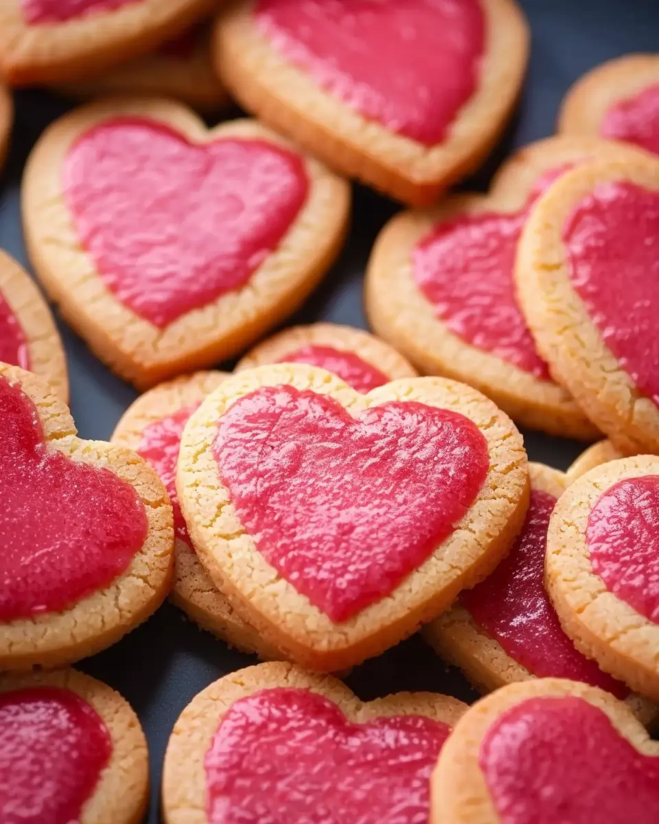 A delightful recipe for heart-shaped cookies that are perfect for sharing with loved ones. These cookies are easy to make and can be stored for later enjoyment.