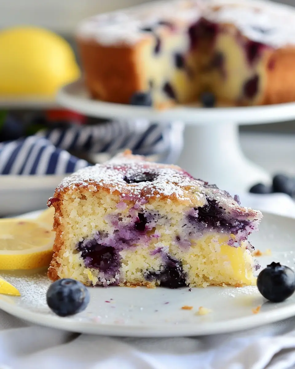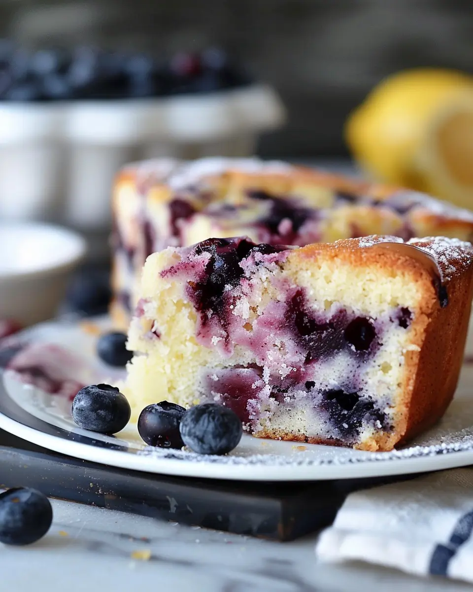 A delightful lemon blueberry yogurt cake that is soft and moist, perfect for any occasion.