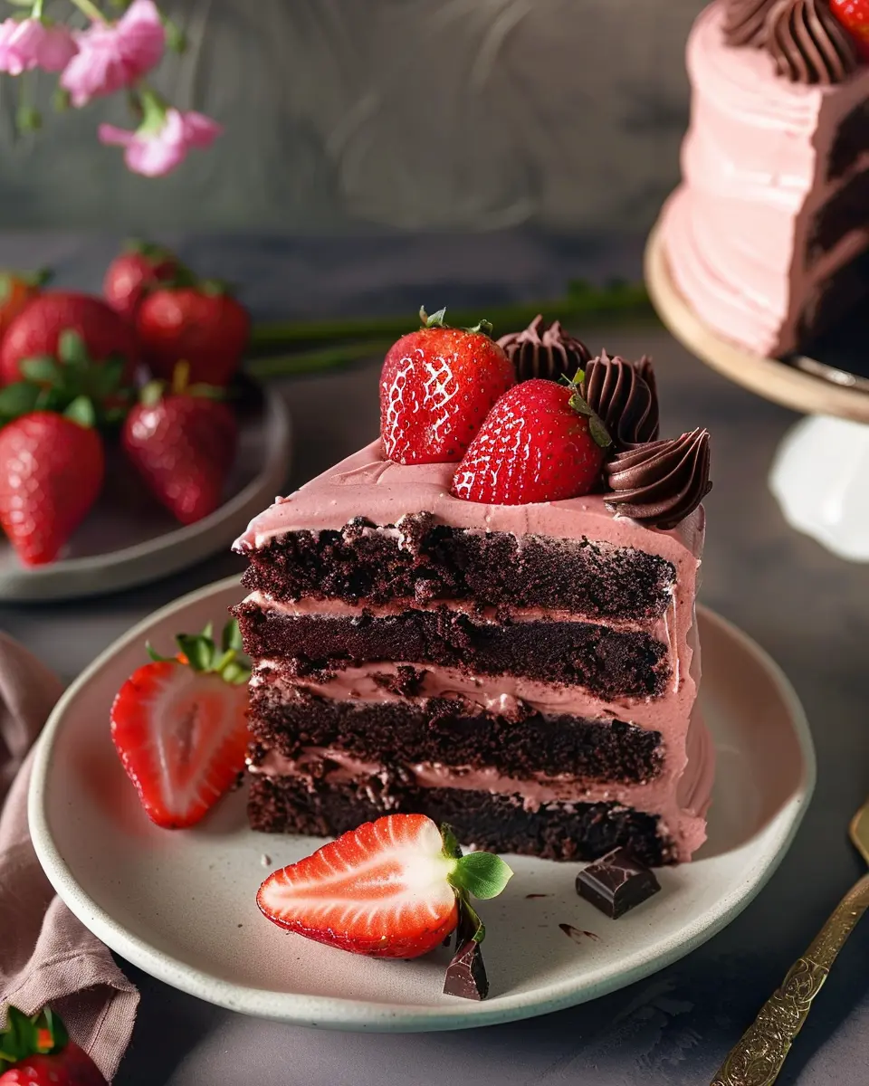 When you cut into this strawberry chocolate cake, you’ll reveal those beautiful layers, making it not only a treat for the taste buds but also a feast for the eyes. Enjoy every bite and let the compliments roll in!