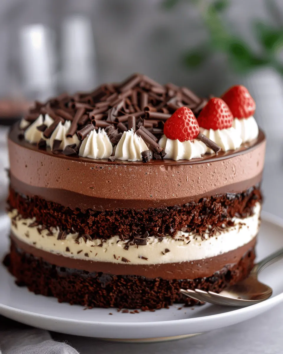 PrintTuxedo Cake: Indulgent Triple Chocolate Mousse Delight