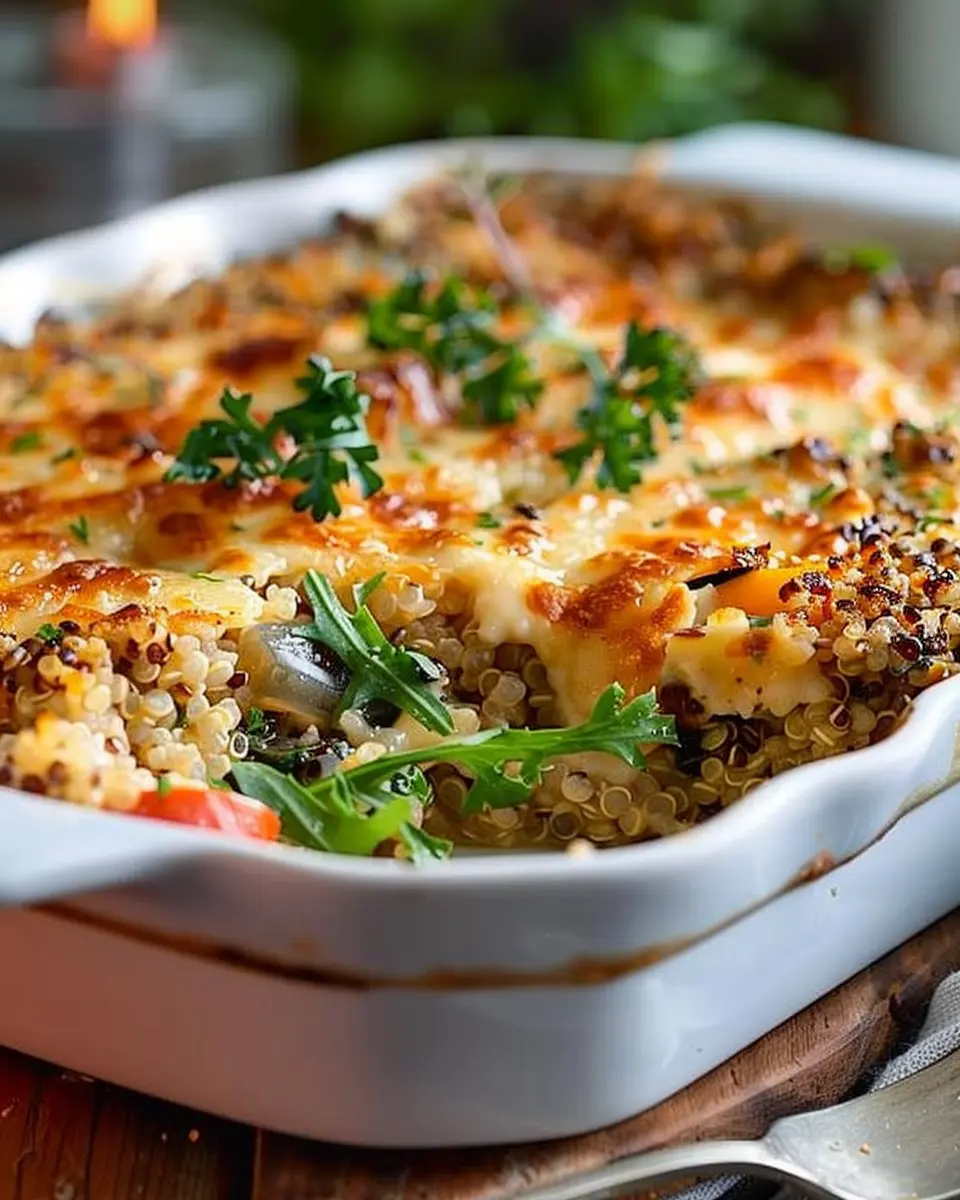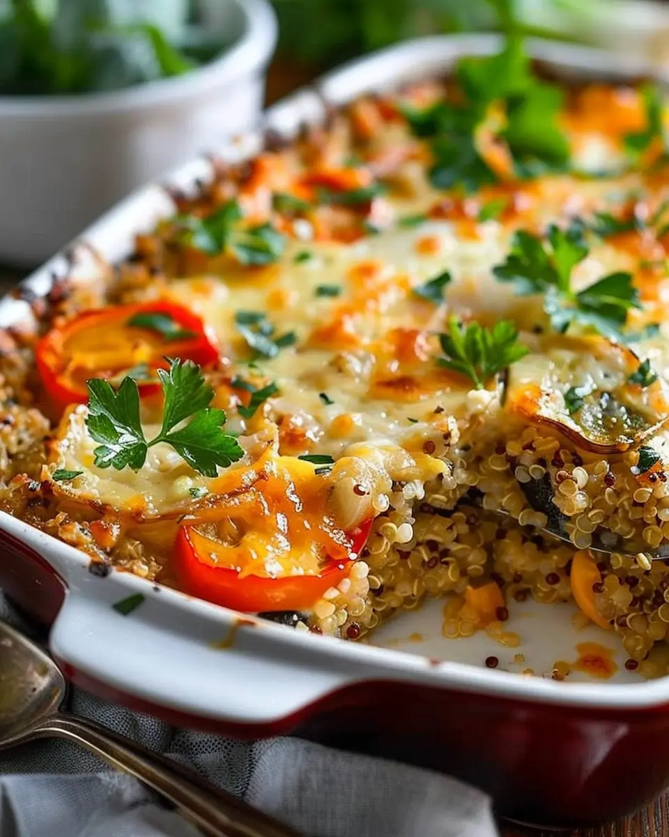 A delicious and healthy quinoa casserole loaded with veggies, perfect for a family dinner.