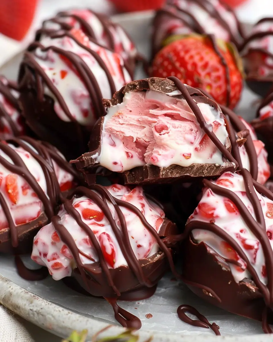 Once the yogurt clusters are completely frozen, it’s time for the fun part! Take each frozen cluster and dip it into the melted chocolate, ensuring it is fully coated. You can use a fork to lift it out, letting the excess chocolate drip off. This step not only adds a lovely glossy finish but also enhances the overall flavor of your Viral Chocolate Strawberry Yogurt Clusters.