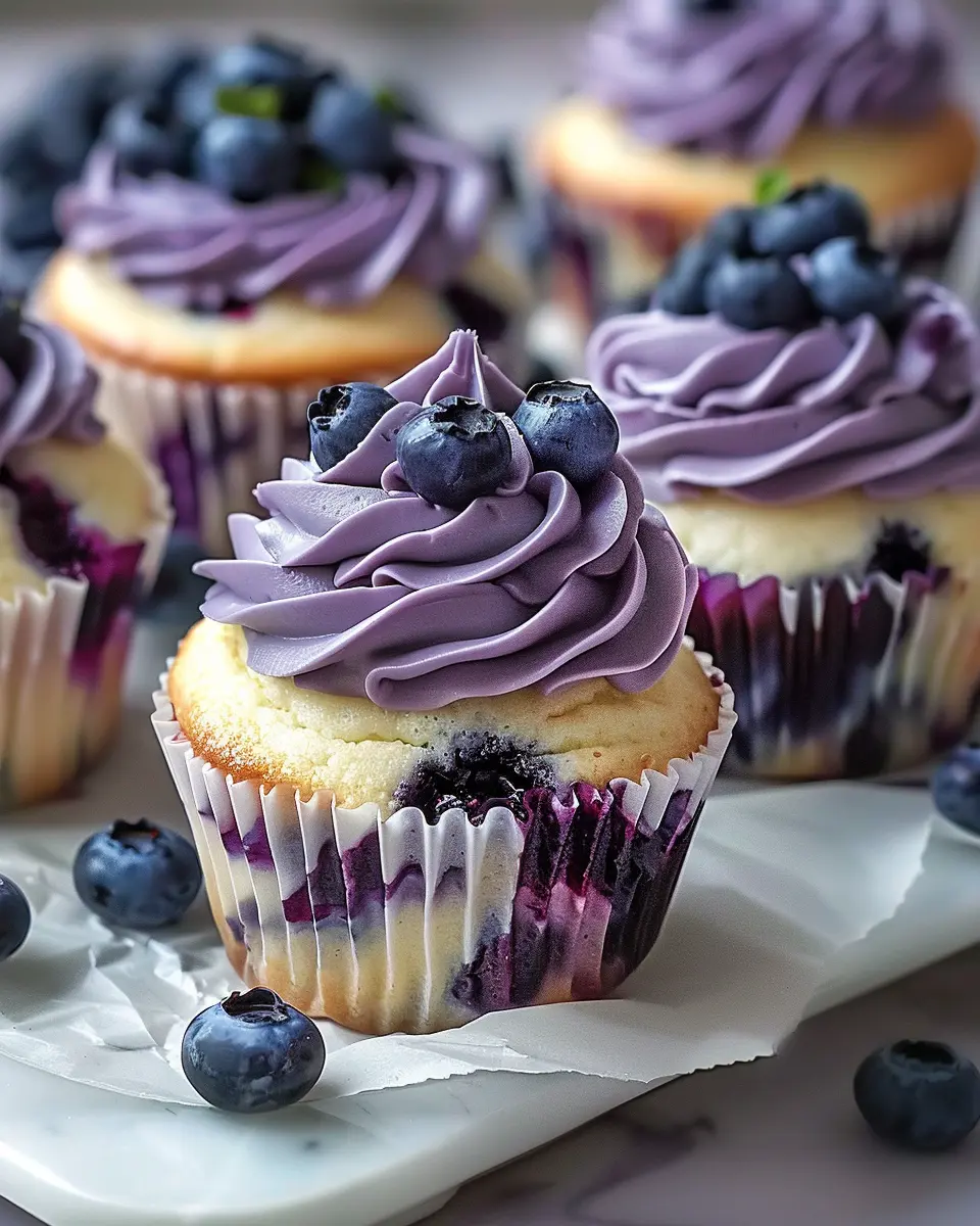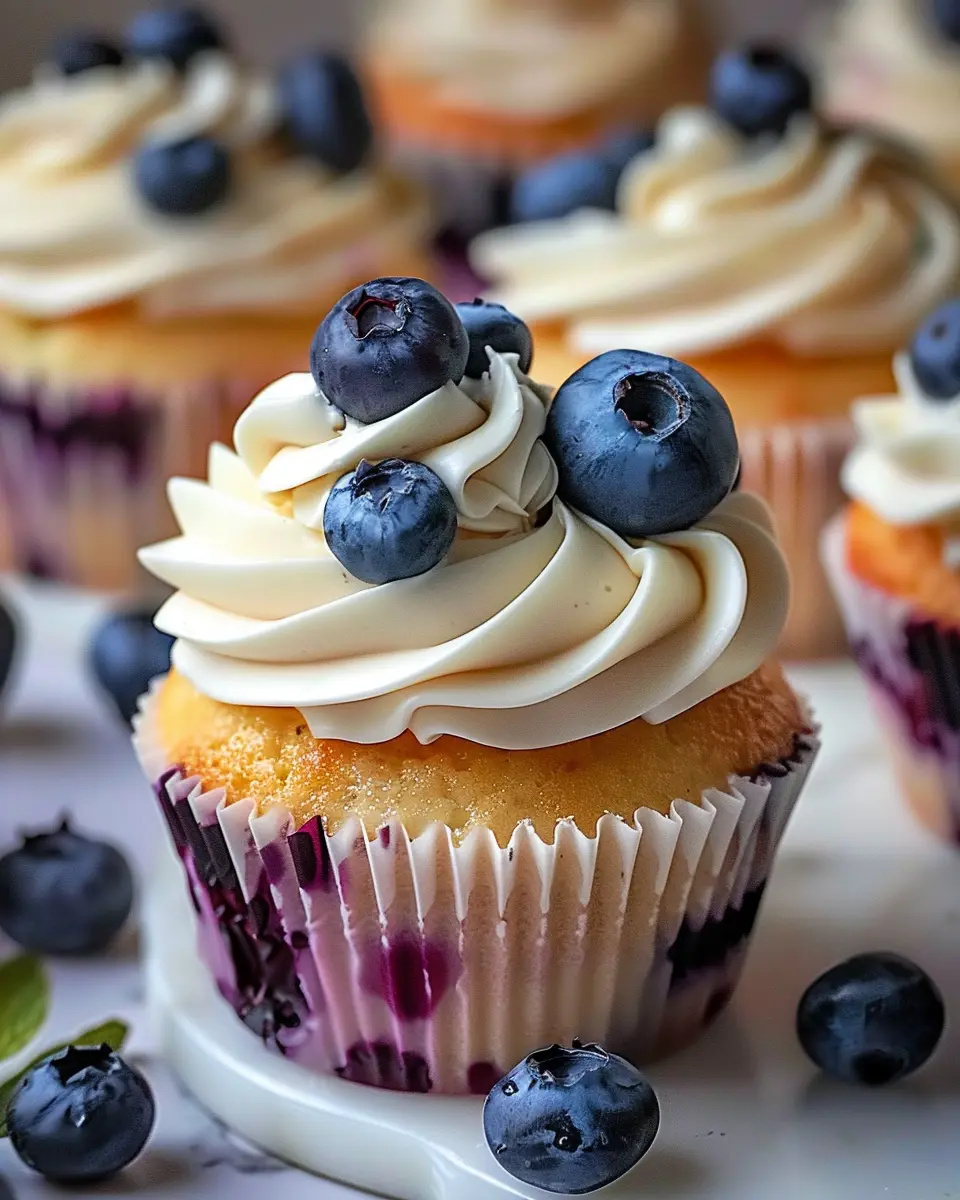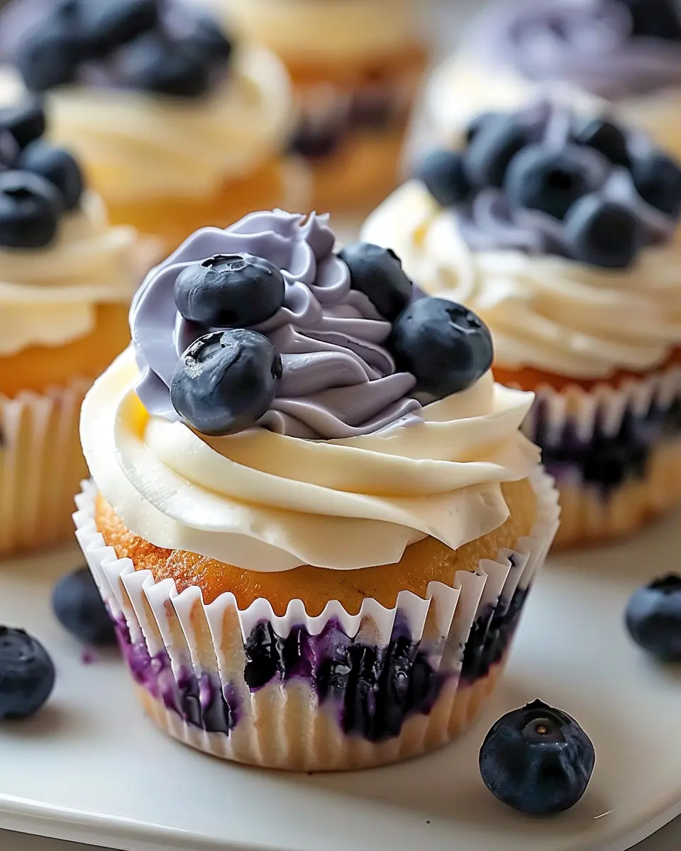 - Topped with Fresh Berries: Garnish each cupcake with a few fresh blueberries or raspberries for a pop of color and freshness.